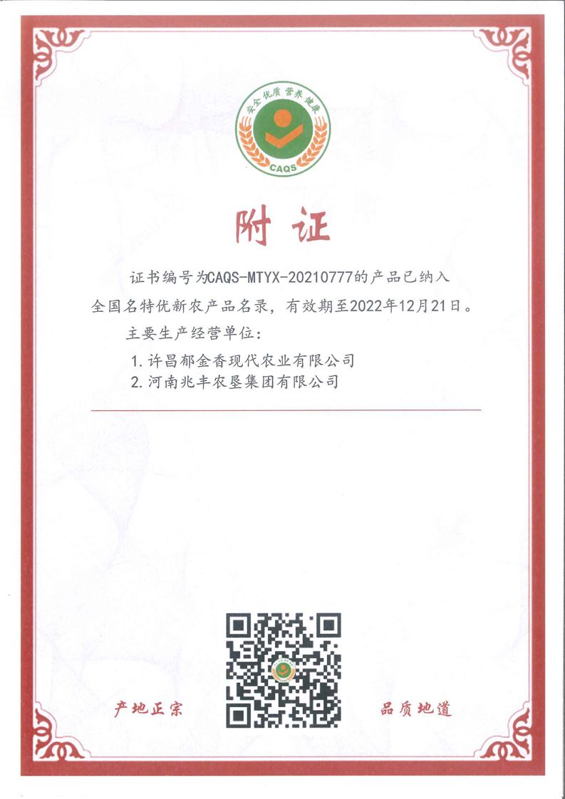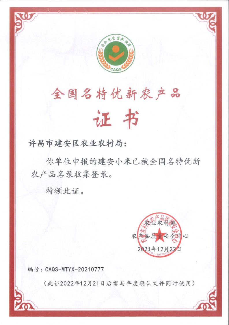 · 祝贺河南兆丰农垦集团有限公司 申报的“建安小米”被全国名特优新农产品名录收集登录